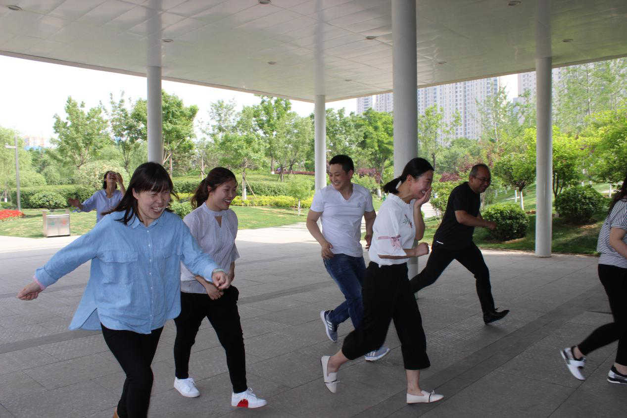 收拾下心情,大家一起來(lái)到和平公園開(kāi)始游戲——“老鷹老鷹幾點(diǎn)了”,大部分人都忘記這個(gè)游戲該怎么玩兒了,大家邊學(xué)邊玩兒。每個(gè)人對(duì)游戲的認(rèn)識(shí)都不一樣,有人躍躍欲試,一大步一大步靠近老鷹,有人比較謹(jǐn)慎,一小步一小步前進(jìn)生怕被老鷹抓走。不過(guò),大家都樂(lè)在其中。