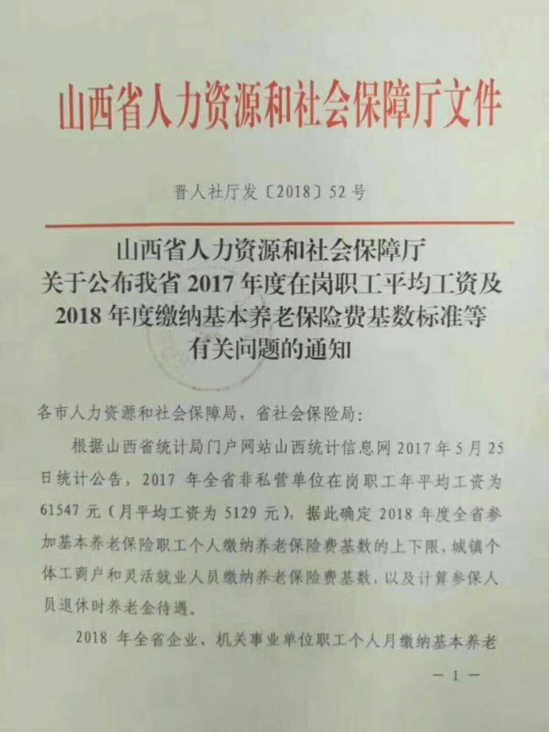 根據(jù)省統(tǒng)計(jì)局門戶網(wǎng)“山西統(tǒng)計(jì)信息網(wǎng)”2018年5月25日統(tǒng)計(jì)公告,2017年全省非私營單位在崗職工年平均工資為61547元(月平均工資為5129元),據(jù)此確定2018年度全省參加基本養(yǎng)老保險(xiǎn)職工個(gè)人繳納養(yǎng)老保險(xiǎn)費(fèi)基數(shù)的上下限,城鎮(zhèn)個(gè)體工商戶和靈活就業(yè)人員繳納養(yǎng)老保險(xiǎn)費(fèi)基數(shù),以及計(jì)算參保人員退休時(shí)養(yǎng)老金待遇。