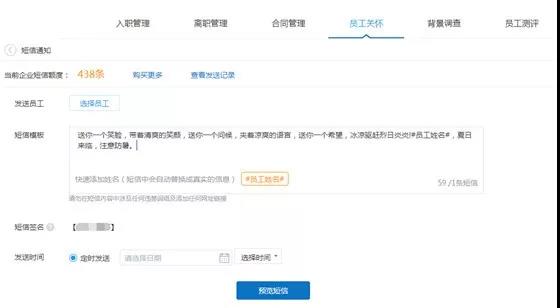 結合短信通知功能,我們提前編輯好祝福信息或通知,系統(tǒng)到期自動發(fā)放,且短信是包 含企業(yè)簽名的。而提前收到通知的人事也有充足的時間給員工準備相關活動或禮物,大幅度 增強歸屬感。