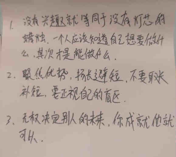 課程伊始,鄧老師首先帶領大家回顧了上一講當中的自我盤點、職業(yè)周期與職業(yè)性向,通過確定優(yōu)勢讓大家對自身有了更好的了解。興趣是******的老師,在興趣的天空了兩位學員,講述了自己***感興趣的三件事,真實而又默契的發(fā)聲引起陣陣掌聲。