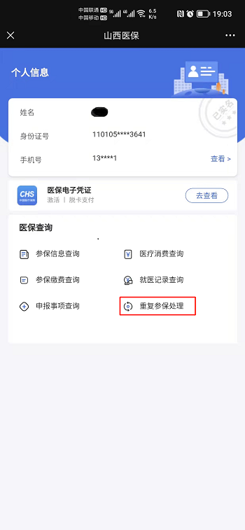 第四步 選擇右下角的“重復(fù)參保處理”。