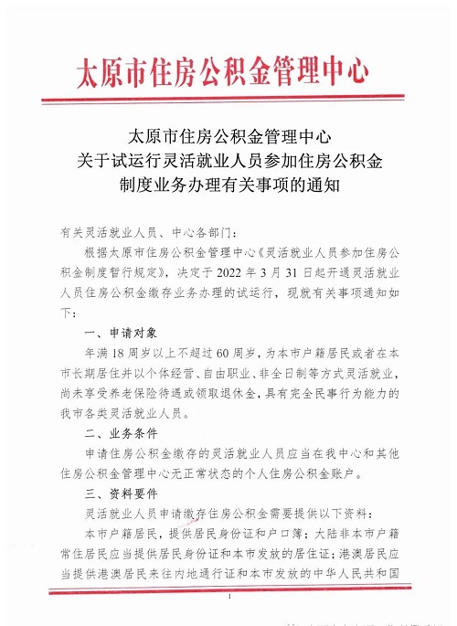 關(guān)于試運行靈活就業(yè)人員參加住房公積金制度業(yè)務(wù)辦理有關(guān)事項的通知