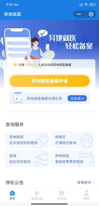 微信搜索“國家異地就醫(yī)備案”微信小程序,點擊“異地就醫(yī)備案申請”,首次使用須進行“實人認證”。