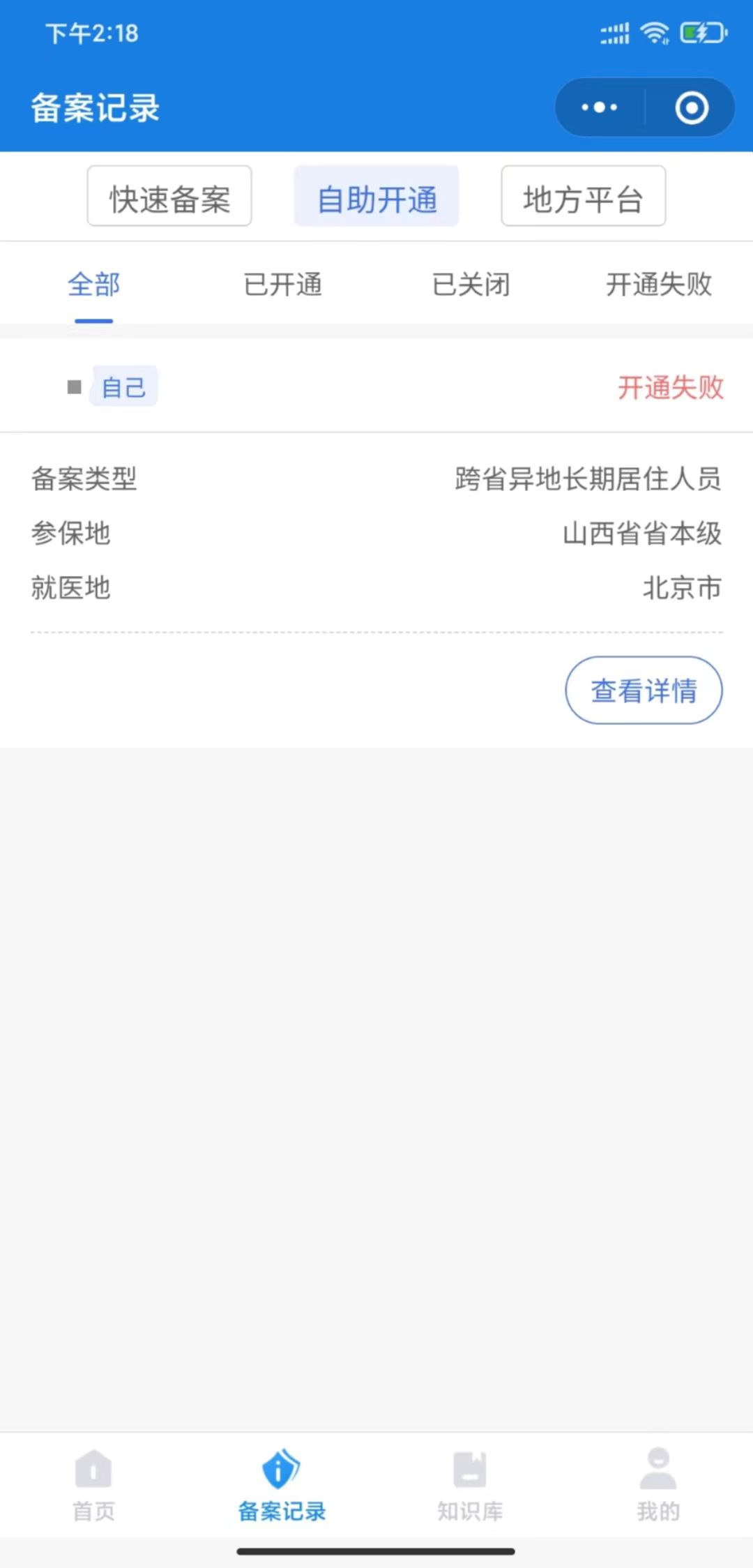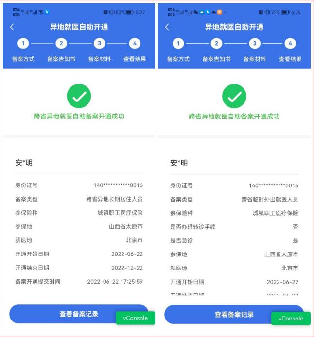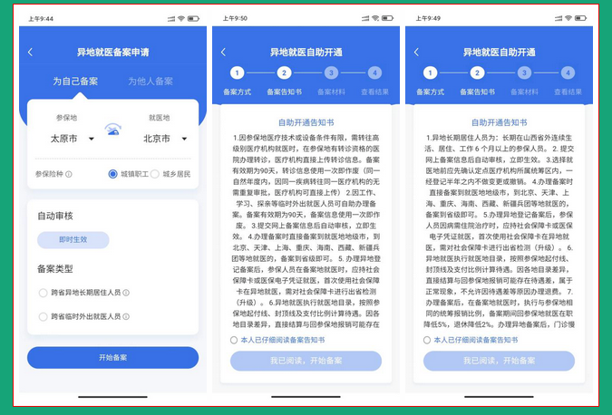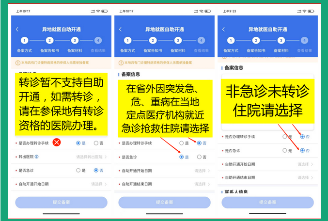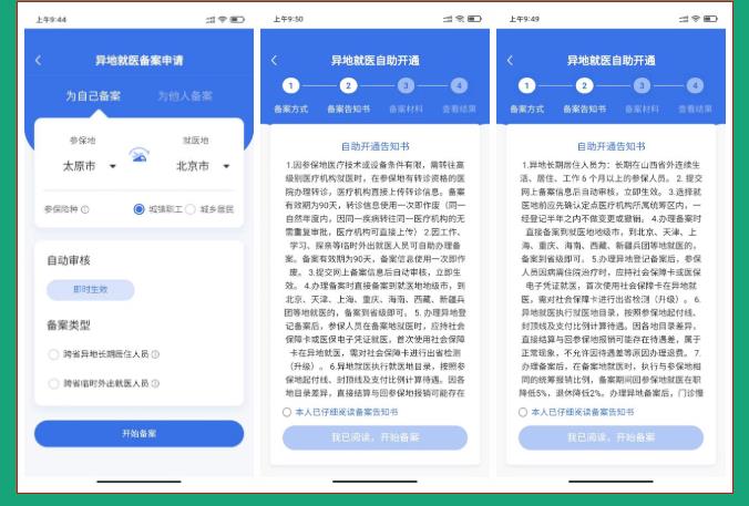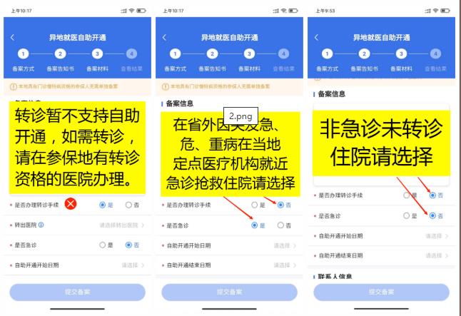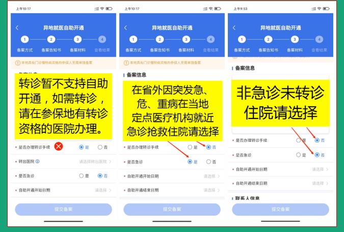 選擇備案類型“跨省異地長期居住人員”或“跨省臨時外出就醫(yī)人員”。