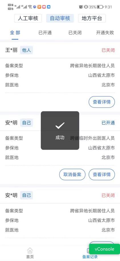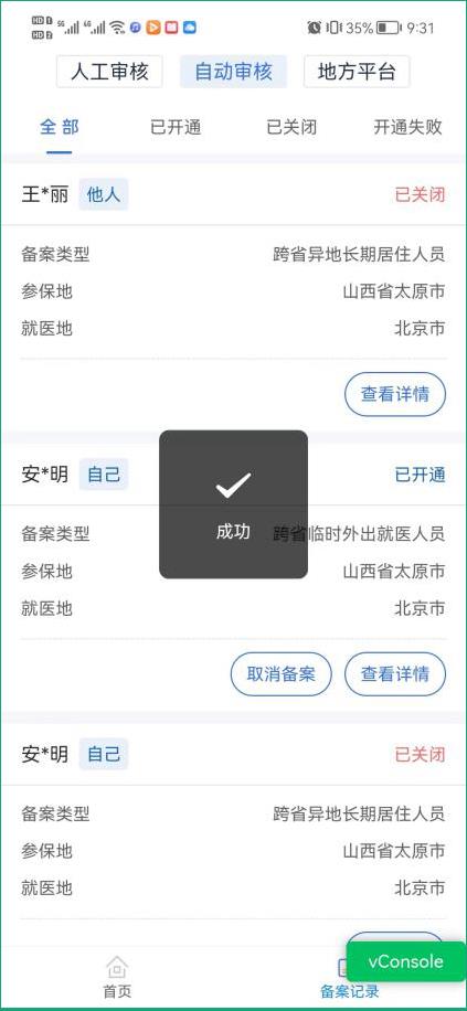 點擊右下角的備案記錄,選擇“自動審核”,可以查詢到自助備案的信息。