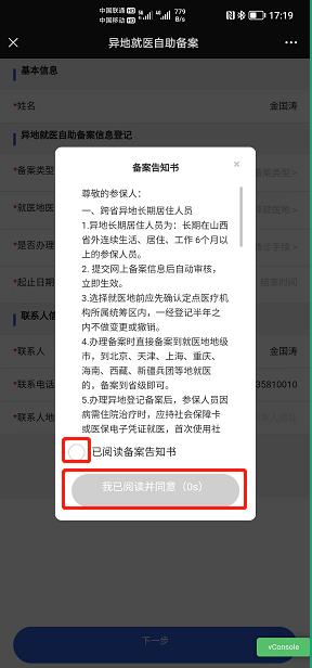 5.根據(jù)自身實際情況將所有信息進行完善(注:異地長期居住類備案六個月內(nèi)無法進行撤銷),確認無誤后點擊下一步。