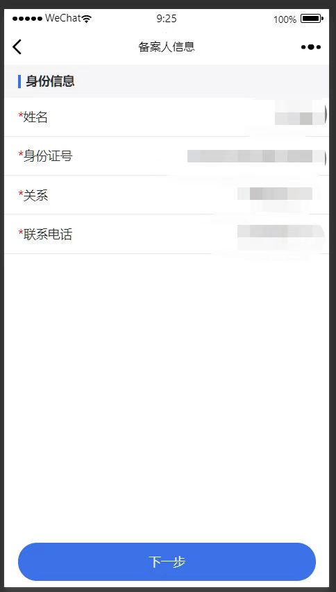 5.依照頁面展示,依次填寫備案人的身份信息。