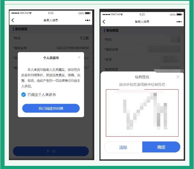 6.請仔細閱讀并查看代辦人承諾書內(nèi)容,確認無誤后簽字。