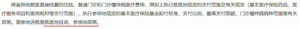 也就是說(shuō),費(fèi)用能不能報(bào),看就醫(yī)地的政策;能報(bào)銷(xiāo)多少,看參保地的政策。