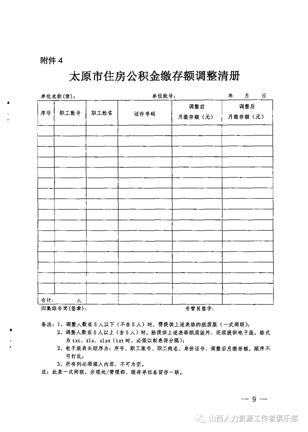 單位應當填報《太原市住房公積金繳存基數(shù)或繳存比例年度 調(diào)整申請書》(附件 3,可在中心網(wǎng)站下載)和《太原市住房公 積金繳存額調(diào)整清冊》(附件 4,可在中心網(wǎng)站下載),并制作《太 原市住房公積金繳存額調(diào)整清冊》電子版,通過本單位住房公積 金繳存分理處/管理部前臺柜面進行調(diào)整。