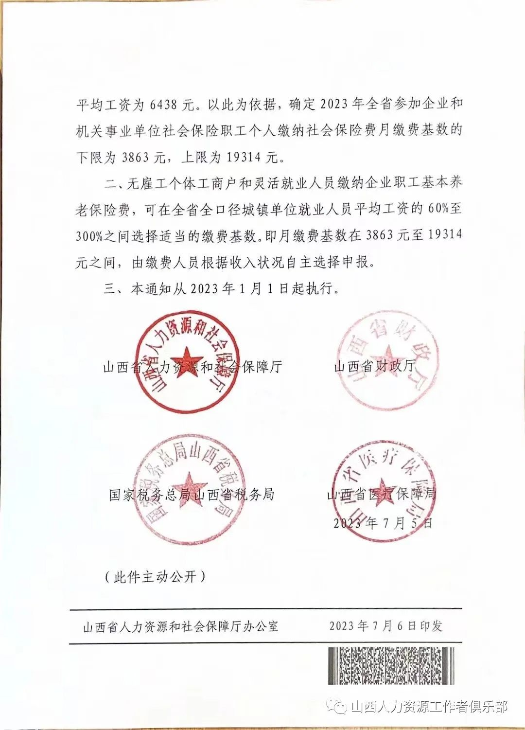 2023年社會(huì)保險(xiǎn)繳費(fèi)基數(shù)標(biāo)準(zhǔn)公布,下限3863元,上限19314元,從2023年1月日執(zhí)行。