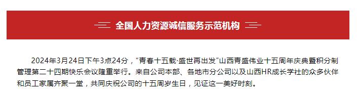 “青春十五載·盛世再出發(fā)”山西青盛偉業(yè)十五周年慶典暨積分制管理第二十四期快樂會議圓滿舉辦